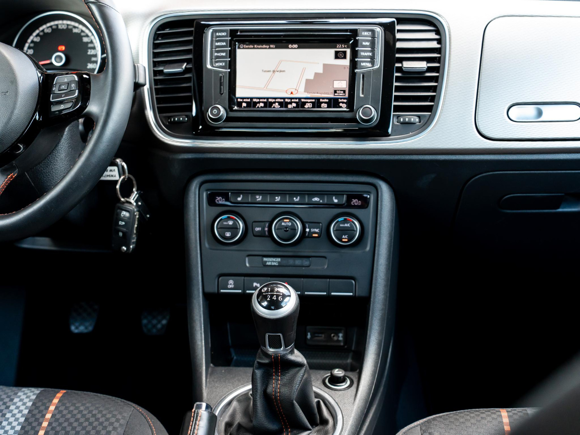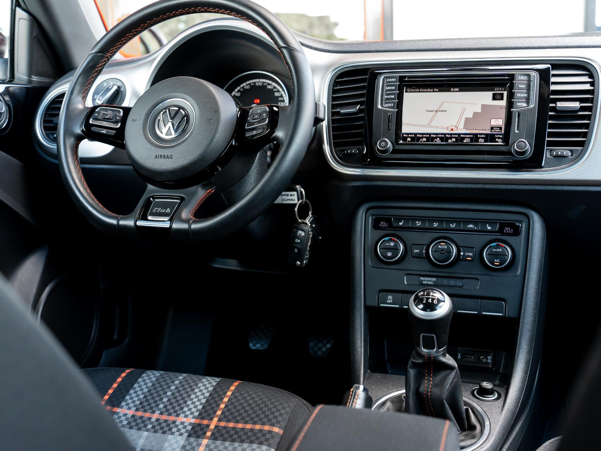 Het navigatiesysteem en het audio-installatiesysteem bedient u met knoppen op het stuur of met gesproken commando's. Dankzij electronic climate control is het interieur behaaglijk warm of verfrissend koel. U kunt bij het inparkeren natuurlijk niet aan alle kanten ogen hebben. Daarom is deze Volkswagen Beetle voorzien van parkeersensoren! Deze Volkswagen is bovendien voorzien van cruise control. Dus comfortabel en zuinig rijden verzekerd! Ook centrale deurvergrendeling met afstandsbediening en boordcomputer horen tot de voorzieningen op deze auto.