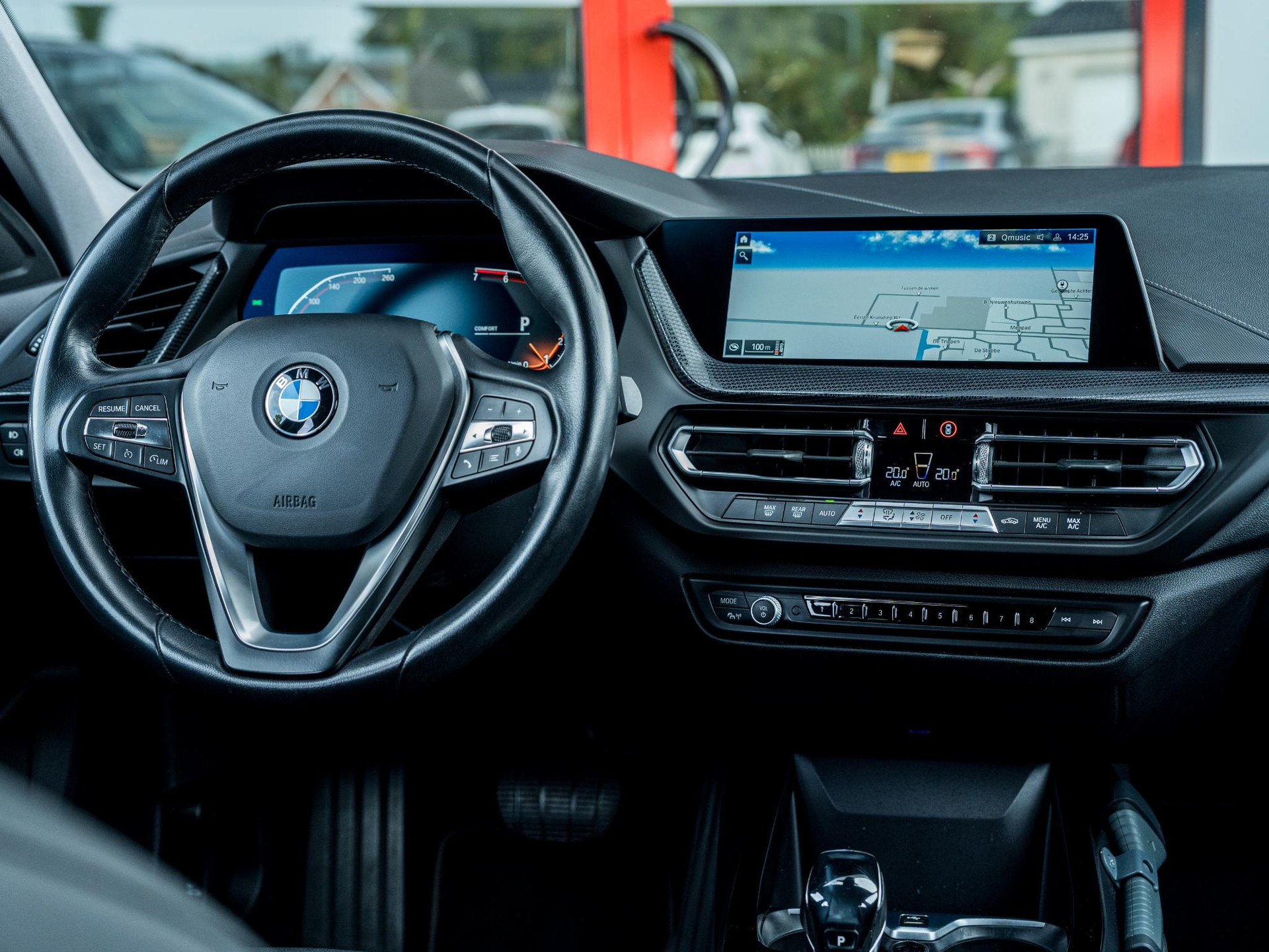 Voor een goed en duidelijk overzicht onderweg is het digitale dashboard uitermate slim ingedeeld. Via uw smartphone en Connected Services checkt u eenvoudig de belangrijke functies van de auto, overal en altijd. Deze BMW is voorzien van spraakbediening voor het navigatiesysteem met harde schijf en voor het audiosysteem. Maar u kunt ook de knoppen op het stuur gebruiken. De sensoren van de achteropkomend verkeer waarschuwing houden zicht op de dode hoeken achter u. Te weinig afstand tot de achterligger? Het systeem geeft direct een signaal. In een auto als deze kunt u niet zonder electronic climate control, zodat de temperatuur altijd goed is. Extra opties op deze auto zijn: parkeersensoren achter, regensensor, cruise control, sportstuurwiel, centrale deurvergrendeling met afstandsbediening en boordcomputer.