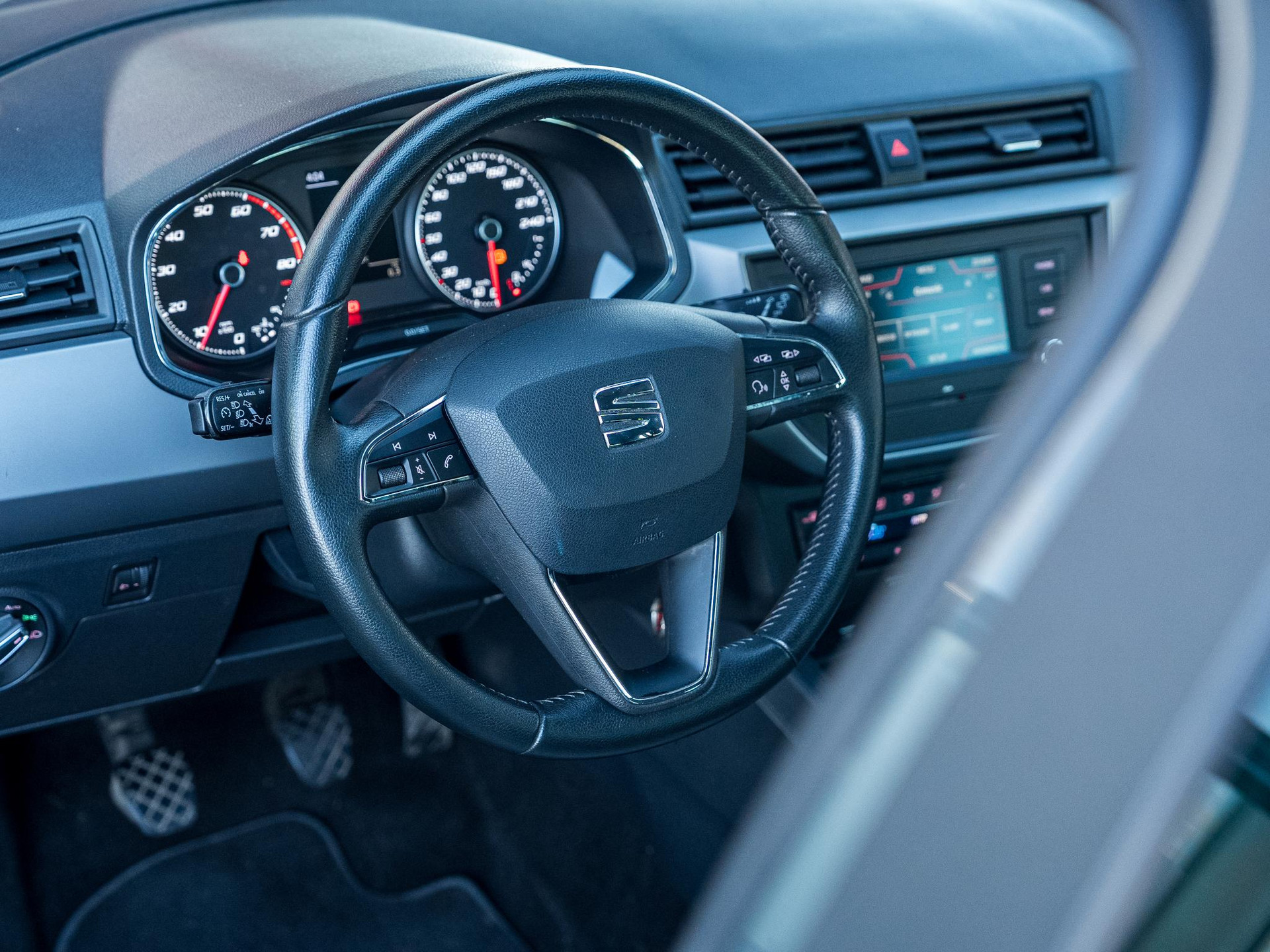 De auto is ook uitgevoerd met automatische airconditioning. Even switchen naar de verkeersinformatie? Ook dat kan met één druk op de knop van de audiobediening op het stuur. De parkeersensoren vertellen precies hoe ver u kunt gaan. Hoe dichter op een obstakel, hoe sneller de piepjes. De cruise control levert een mooie, gelijkmatige koers. Dat rijdt prettig. U bent in deze SEAT ook voorzien van automatisch dimmende binnenspiegel, centrale deurvergrendeling met afstandsbediening, boordcomputer en lederen versnellingspook.