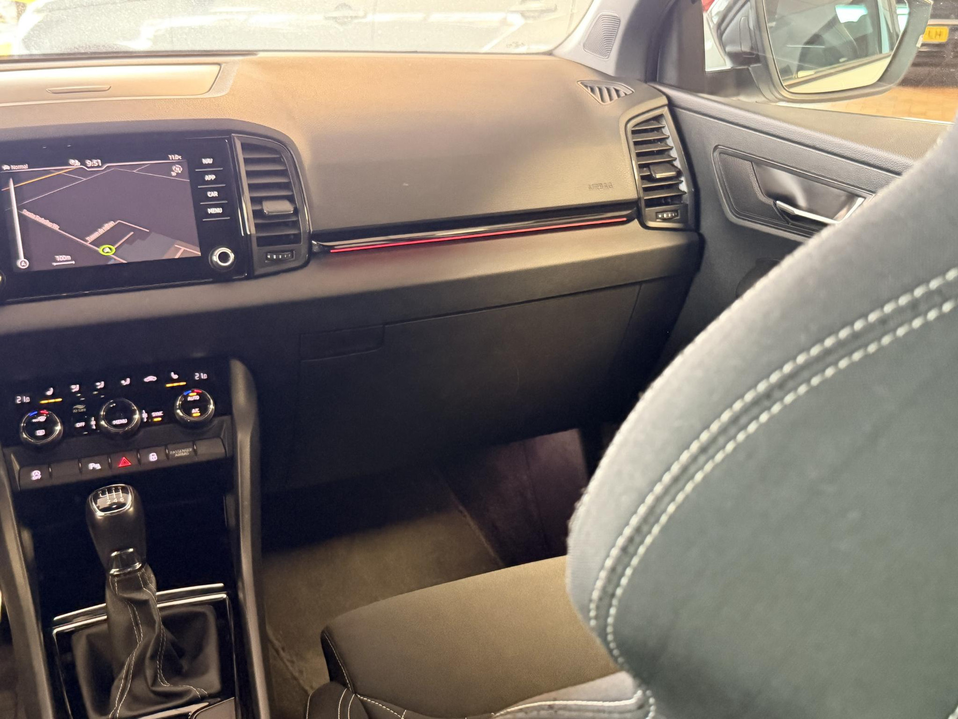 Het digitale dashboard is niet alleen enorm fraai en handig, maar draagt actief bij aan een veilige en slimme rit. De achteruitrijcamera maakt inparkeren gemakkelijker dan ooit. Deze Skoda Karoq is 'connected'. Belangrijke functies worden permanent gemeten en zijn uit te lezen via een speciale app, ook op afstand. Deze Skoda is voorzien van spraakbediening voor het full map navigatiesysteem en voor het audiosysteem met DAB-ontvangst. Maar u kunt ook de knoppen op het stuur gebruiken. Moet uw smartphone ook even tanken? Bijladen kan supersimpel met de draadloze telefoonlader. De Skoda is standaard voorzien van: automatische airconditioning, regensensor, cruise control, keyless entry, automatisch dimmende buitenspiegels en boordcomputer.